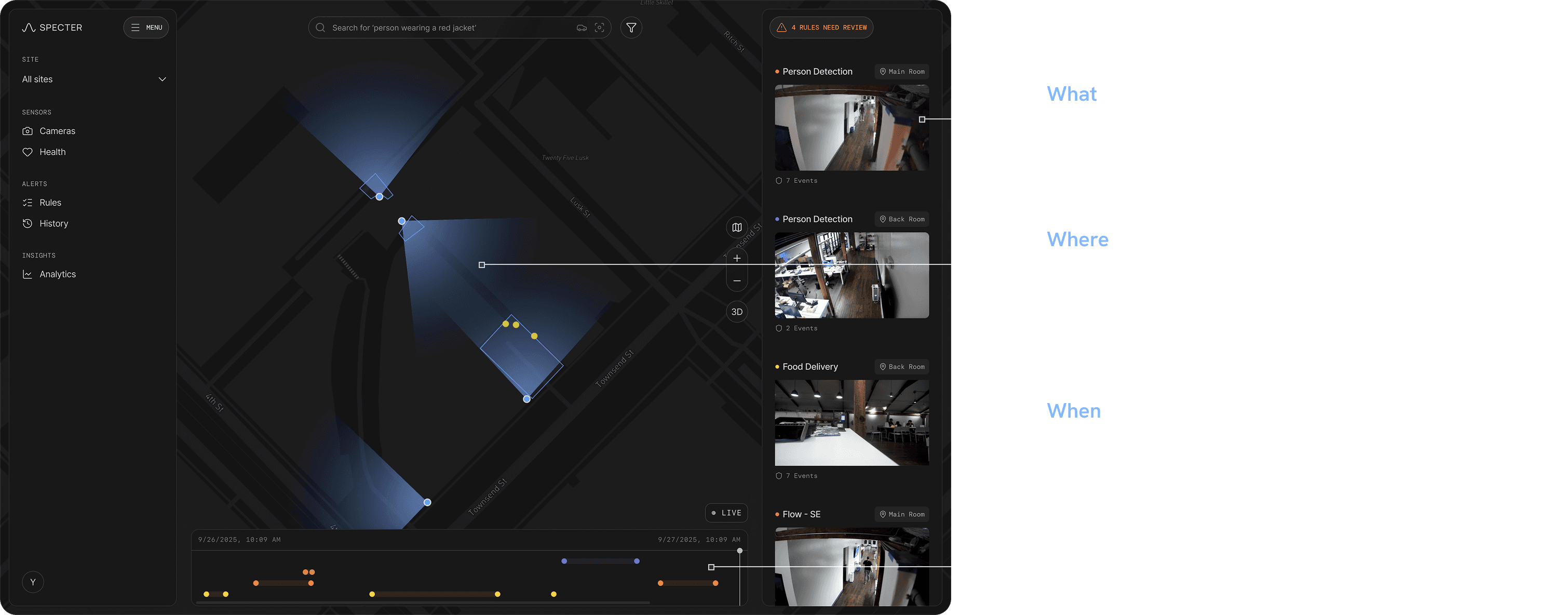 Find any person, object, or behavior instantly with natural-language search across your entire environment
