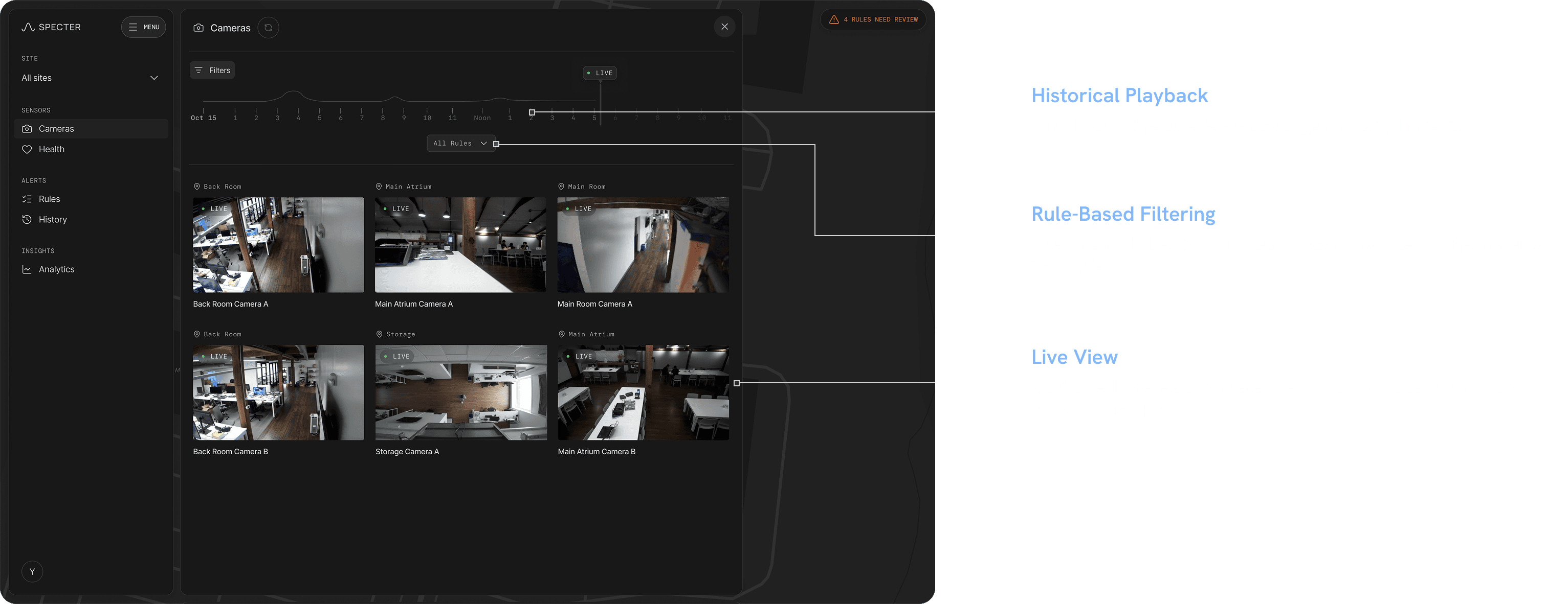 See live and historical activity in your site across every sensor.