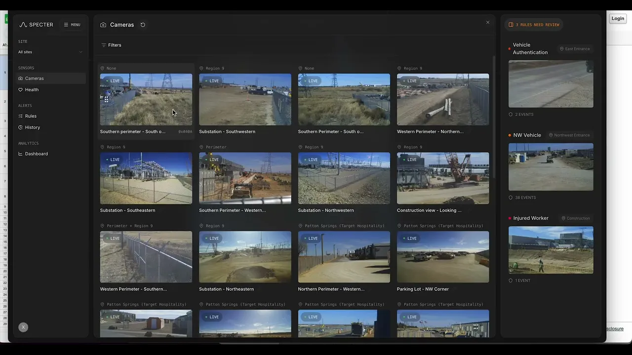 Specter secures critical environments through real-time AI perception that detects, understands, and responds to events across vast physical spaces.